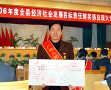 在2月27日縣委、縣府召開的全縣經(jīng)濟(jì)社會發(fā)展目標(biāo)責(zé)任制獎懲兌現(xiàn)大會上,我公司榮獲“廣饒縣納稅企業(yè)一等獎”,并獎勵公司法人代表趙曰嶺董事長獎金20萬元。