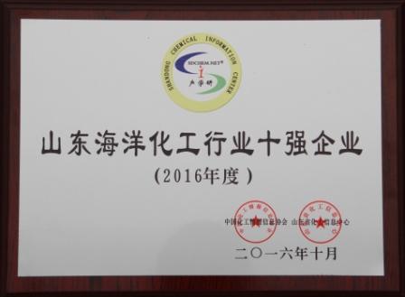10月27日,2016山東省石油和化學(xué)工業(yè)企業(yè)100強(qiáng)發(fā)布會在濟(jì)南召開。會議發(fā)布了2016山東省石油和化學(xué)工業(yè)企業(yè)100強(qiáng)榜單,公司位列2016山東省石油和化學(xué)工業(yè)企業(yè)100強(qiáng)第11名;位列山東省海洋化工行業(yè)十強(qiáng)企業(yè)第2名。