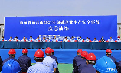 2021年6月2日,東營市2021年氯堿企業(yè)生產(chǎn)安全事故應(yīng)急演練暨廣饒縣第20個(gè)全國安全生產(chǎn)月活動(dòng)啟動(dòng)儀式在大王公司舉行。東營市副市長、市公安局局長戚思宇,市政府副秘書長、市應(yīng)急管理局局長、市市域治理運(yùn)行管理中心主任劉良范,廣饒縣委常委、常務(wù)副縣長張江圣,副縣長、縣公安局局長楊秀林,大王鎮(zhèn)黨委副書記、鎮(zhèn)長李洪剛,大王鎮(zhèn)黨委統(tǒng)戰(zhàn)委員、應(yīng)急管理局局長韓林,發(fā)展改革、工業(yè)和信息化、生態(tài)環(huán)境、交通運(yùn)輸、衛(wèi)生健康、市場監(jiān)管、氣象、消防等部門單位負(fù)責(zé)同志,金嶺集團(tuán)董事長趙曰嶺、總裁趙棟及公司相關(guān)人員參加了演練活動(dòng)。