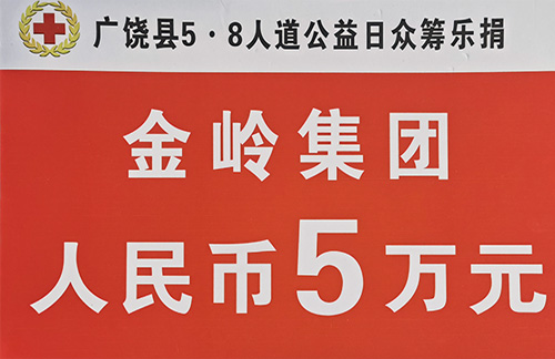 2022年5月8日,在廣饒縣首屆“5.8人道公益日”眾籌樂捐活動(dòng)啟動(dòng)儀式上,金嶺集團(tuán)向廣饒縣紅十字會(huì)現(xiàn)場(chǎng)捐贈(zèng)人民幣5萬元。多年來,公司大力支持社會(huì)公益事業(yè),積極參與愛心捐贈(zèng)活動(dòng),多次受到表彰,彰顯了公司強(qiáng)烈的社會(huì)責(zé)任感,體現(xiàn)了公司的擔(dān)當(dāng)精神。