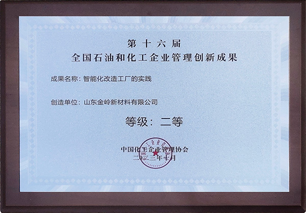 金嶺新材料榮獲“第十六屆全國石油和化工企業(yè)管理創(chuàng)新成果”二等獎(jiǎng)