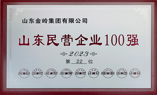 2023年8月,由山東省工商業(yè)聯(lián)合會、山東省科學(xué)技術(shù)廳、山東省工業(yè)和信息化廳等8個單位聯(lián)合組織舉辦的2023山東民營企業(yè)100強(qiáng)系列榜單發(fā)布會在德州召開,會上發(fā)布2023年山東民營企業(yè)100強(qiáng)系列榜單,金嶺集團(tuán)位列 “2023山東民營企業(yè)100強(qiáng)”第22位,并被授予“2023山東民營企業(yè)吸納就業(yè)100強(qiáng)”榮譽(yù)稱號。