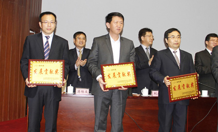 2月13日,東營(yíng)經(jīng)濟(jì)技術(shù)開(kāi)發(fā)區(qū)召開(kāi)2015年全區(qū)工作會(huì)議,會(huì)議表彰了2014年先進(jìn)集體和先進(jìn)個(gè)人,新材料公司榮獲發(fā)展貢獻(xiàn)獎(jiǎng)。