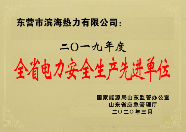 2020年3月2日,國家能源局山東監(jiān)管辦公室、山東省應(yīng)急管理廳下發(fā)文件,授予東營市濱海熱力有限公司“2019年度全省電力安全生產(chǎn)先進單位”榮譽稱號,以表彰公司在全省電力安全生產(chǎn)工作中做出的突出成績。2019年,濱海熱力公司深入開展電力安全生產(chǎn)專項整治行動、電力行業(yè)“安全生產(chǎn)月”活動,圓滿完成新中國成立 70周年系列慶?;顒与娏Π踩U先蝿?wù),為保持全省電力安全生產(chǎn)穩(wěn)定運行做出了突出貢獻。