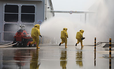 對模擬氯氣泄漏現(xiàn)場進行處置