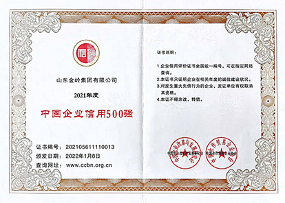 2022年1月8日,由中國企業(yè)改革與發(fā)展研究會、中國合作貿(mào)易企業(yè)協(xié)會聯(lián)合主辦的“2022中國企業(yè)信用發(fā)展論壇暨第十三屆誠信公益盛典”在北京召開,會議隆重發(fā)布2021年度“中國企業(yè)信用500強(qiáng)”、“中國民營企業(yè)信用100強(qiáng)”榜單,金嶺集團(tuán)榮獲兩項(xiàng)榮譽(yù),并在大會上受到表彰。作為《企業(yè)誠信管理體系》標(biāo)準(zhǔn)的起草單位,多年來公司高度重視企業(yè)誠信體系建設(shè),堅(jiān)持誠信經(jīng)營,提升了全體員工的誠信意識,在社會上樹立了良好的企業(yè)信用形象。