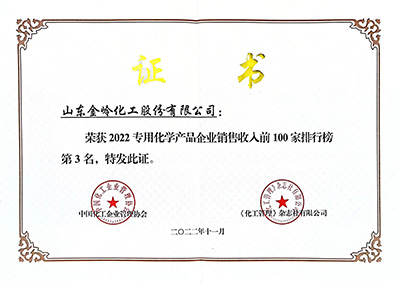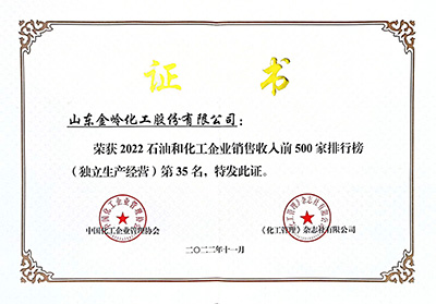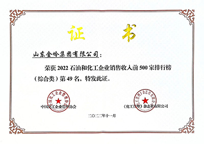 2022年11月29日,由中國石油和化學(xué)工業(yè)聯(lián)合會(huì)與化工企業(yè)管理協(xié)會(huì)主辦的中國石油和化工企業(yè)500強(qiáng)發(fā)布會(huì)以網(wǎng)絡(luò)會(huì)議形式召開。在會(huì)上,中國石化聯(lián)合會(huì)、化工企業(yè)管理協(xié)會(huì)聯(lián)合發(fā)布了“2022中國石油和化工企業(yè)銷售收入前500家”榜單,金嶺集團(tuán)位列綜合類第49位;金嶺化工股份公司位列獨(dú)立生產(chǎn)經(jīng)營類第35位、位列“中國專用化學(xué)產(chǎn)品企業(yè)銷售收入前100家”第3位。