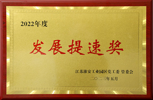 2023年5月10日,在淮安工業(yè)園區(qū)管委會(huì)舉辦的高質(zhì)量發(fā)展總結(jié)動(dòng)員大會(huì)暨“沖刺雙過(guò)半”經(jīng)濟(jì)運(yùn)行調(diào)度會(huì)上,江蘇富強(qiáng)新材料有限公司被授予“2022年度發(fā)展提速獎(jiǎng)”,以表彰公司對(duì)當(dāng)?shù)亟?jīng)濟(jì)發(fā)展做出的突出貢獻(xiàn)。