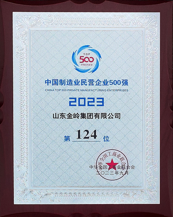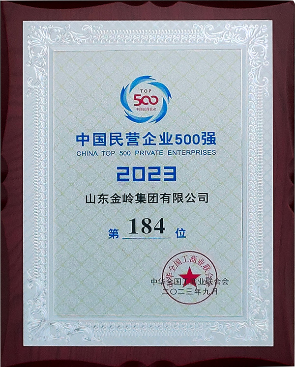2023年9月,全國工商業(yè)聯(lián)合會發(fā)布中國民營企業(yè)500強、中國制造業(yè)民營企業(yè)500強榜單,金嶺集團位列“2023中國民營企業(yè)500強”第184位,“2023中國制造業(yè)民營企業(yè)500強”第124位。