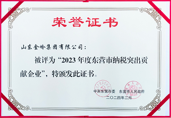2024年2月20日,在東營市委、市政府召開的東營市2023年度綜合表彰暨高質(zhì)量招商引資項目建設(shè)大會上,山東金嶺集團有限公司被評為“東營市納稅突出貢獻企業(yè)”,總裁趙棟被授予“全市加力工業(yè)經(jīng)濟、‘四新’經(jīng)濟、數(shù)字經(jīng)濟突破先進個人”榮譽稱號,以表彰公司在復(fù)雜的經(jīng)濟形勢下,依法納稅、誠信經(jīng)營,對地方經(jīng)濟發(fā)展做出的突出貢獻。