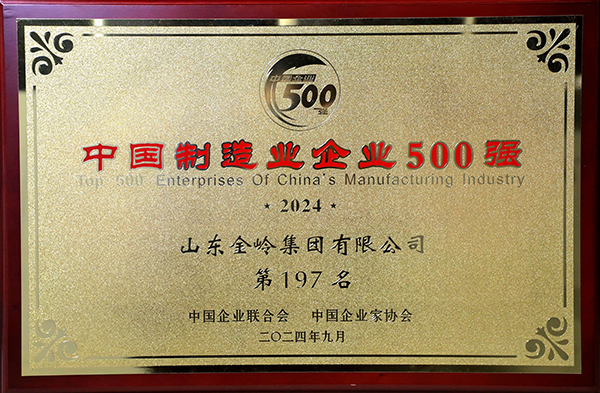2024年9月,中國企業(yè)聯(lián)合會、中國企業(yè)家協(xié)會發(fā)布2024中國企業(yè)500強、2024中國制造業(yè)企業(yè)500強榜單,金嶺集團位列“2024中國企業(yè)500強”第385位;“2024中國制造業(yè)企業(yè)500強”第197位;公司已連續(xù)多年入圍中國企業(yè)500強、中國制造業(yè)企業(yè)500強。