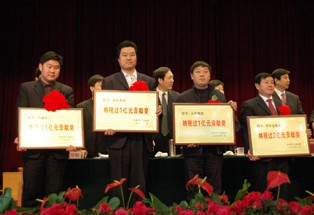 在2月17日召開的全市經(jīng)貿(mào)工作會議上,東營市人民政府授予公司董事長趙曰嶺“突出貢獻(xiàn)企業(yè)家”榮譽(yù)稱號,公司被授予“納稅過1億元貢獻(xiàn)獎”,“項目建設(shè)過6億元投入獎”。