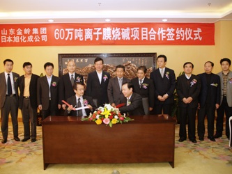 2009年4月27日,我公司與日本旭化成集團在東營市開發(fā)區(qū)管委會就60萬噸離子膜燒堿電解裝置舉行項目合作簽約儀式,公司董事長趙曰嶺與日本旭化成全球營銷總監(jiān)一色聰出席簽約儀式并代表雙方簽字,東營市副市長、開發(fā)區(qū)管委會主任李金琨出席了簽約儀式并接見日方客人一行。電解裝置的順利簽約,標志著公司60萬噸離子膜燒堿項目進入實質(zhì)性進展階段。