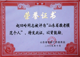 董事長趙曰嶺被評為山東省敬老模范個人