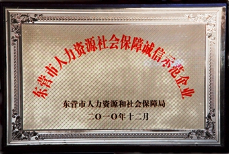 近日,我公司被東營(yíng)市人力資源和社會(huì)保障局評(píng)為“東營(yíng)市人力資源社會(huì)保障誠信示范企業(yè)”以表彰我公司在促進(jìn)社會(huì)就業(yè)和用工勞動(dòng)保障方面所做出的突出貢獻(xiàn)。