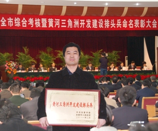 在近日召開(kāi)的2010年度全市綜合考核暨“黃河三角洲開(kāi)發(fā)建設(shè)排頭兵”命名表彰大會(huì)上,公司被授予“黃河三角洲開(kāi)發(fā)建設(shè)排頭兵”榮譽(yù)稱(chēng)號(hào)。近年來(lái),公司搶抓黃河三角洲開(kāi)發(fā)建設(shè)的戰(zhàn)略機(jī)遇,立足自身優(yōu)勢(shì),不斷加大投入,打造循環(huán)經(jīng)濟(jì),推動(dòng)跨越發(fā)展,為黃河三角洲開(kāi)發(fā)建設(shè)做出了突出貢獻(xiàn)。
