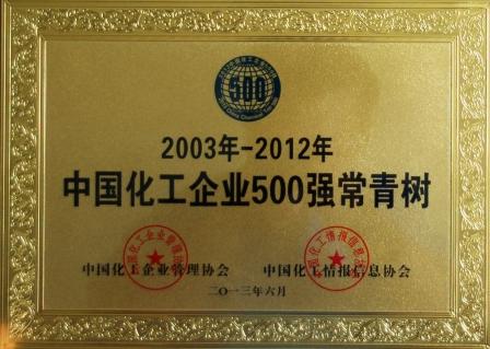 近日,由中國化工企業(yè)管理協(xié)會、中國化工情報信息協(xié)會組織的2013中國化工企業(yè)500強發(fā)布會在山東省德州市舉行,我公司入圍2013中國化工企業(yè)500強,在2013中國專用化學(xué)品制造業(yè)百強企業(yè)第11位,并被評為2003-2012年中國化工企業(yè)500強常青樹。